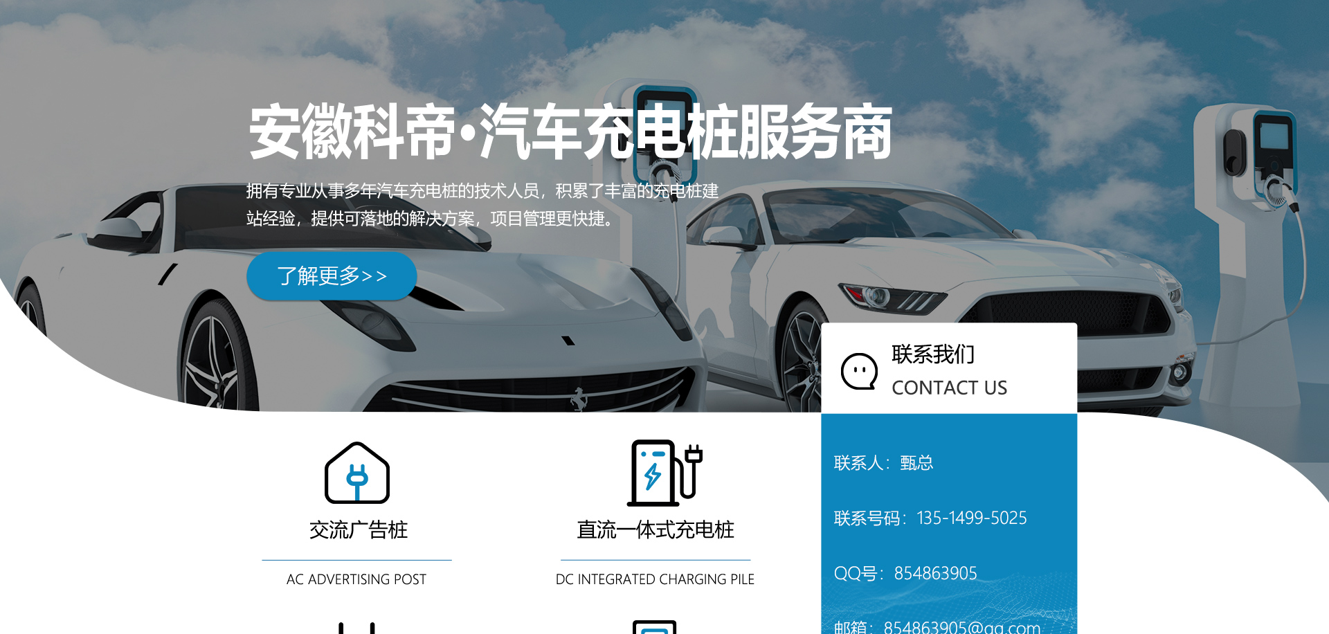 安徽科帝新能源科技有限公司坐落于安徽省會(huì)-合肥,是一家研發(fā)、生產(chǎn)智能充電樁設(shè)備,汽車充電站后臺(tái)監(jiān)控管理系統(tǒng)和生產(chǎn)高壓開關(guān)設(shè)備的企業(yè).由專門的研發(fā)團(tuán)隊(duì)、管理團(tuán)隊(duì)按照現(xiàn)代化企業(yè)制度規(guī)范設(shè)立的有限責(zé)任公司。致力于為能源智能、安全的應(yīng)用和節(jié)能減排提供整體的技術(shù)與產(chǎn)品解決方案。科帝集研發(fā)、設(shè)計(jì)、生產(chǎn)、銷售以及服務(wù)于一體,在電動(dòng)汽車充電方案,充電設(shè)施建設(shè)和城市配電方面擁有廣泛的技術(shù)研究及經(jīng)驗(yàn)積累,為客戶提供安全、智能的充電設(shè)備及充電運(yùn)營(yíng)站建設(shè)一體化解決方案。并堅(jiān)持以人為本、質(zhì)量為先、顧客至上、不斷創(chuàng)新”的企業(yè)理念,為能源行業(yè)的發(fā)展、節(jié)能減排做出重大的貢獻(xiàn)。公司擁有豐富的產(chǎn)品種類,目前科帝已研發(fā)生產(chǎn)了三十多種產(chǎn)品,充電設(shè)備有直流一體式充電樁、直流分體式充電樁、直流廣告樁、交流廣告樁、廣告一體樁、壁掛交直流樁;等多種充電設(shè)備;每一款產(chǎn)品都是精心打造,力求為客戶提供優(yōu)越的用戶體驗(yàn)。展望未來(lái)科帝將通過(guò)持續(xù)的自...